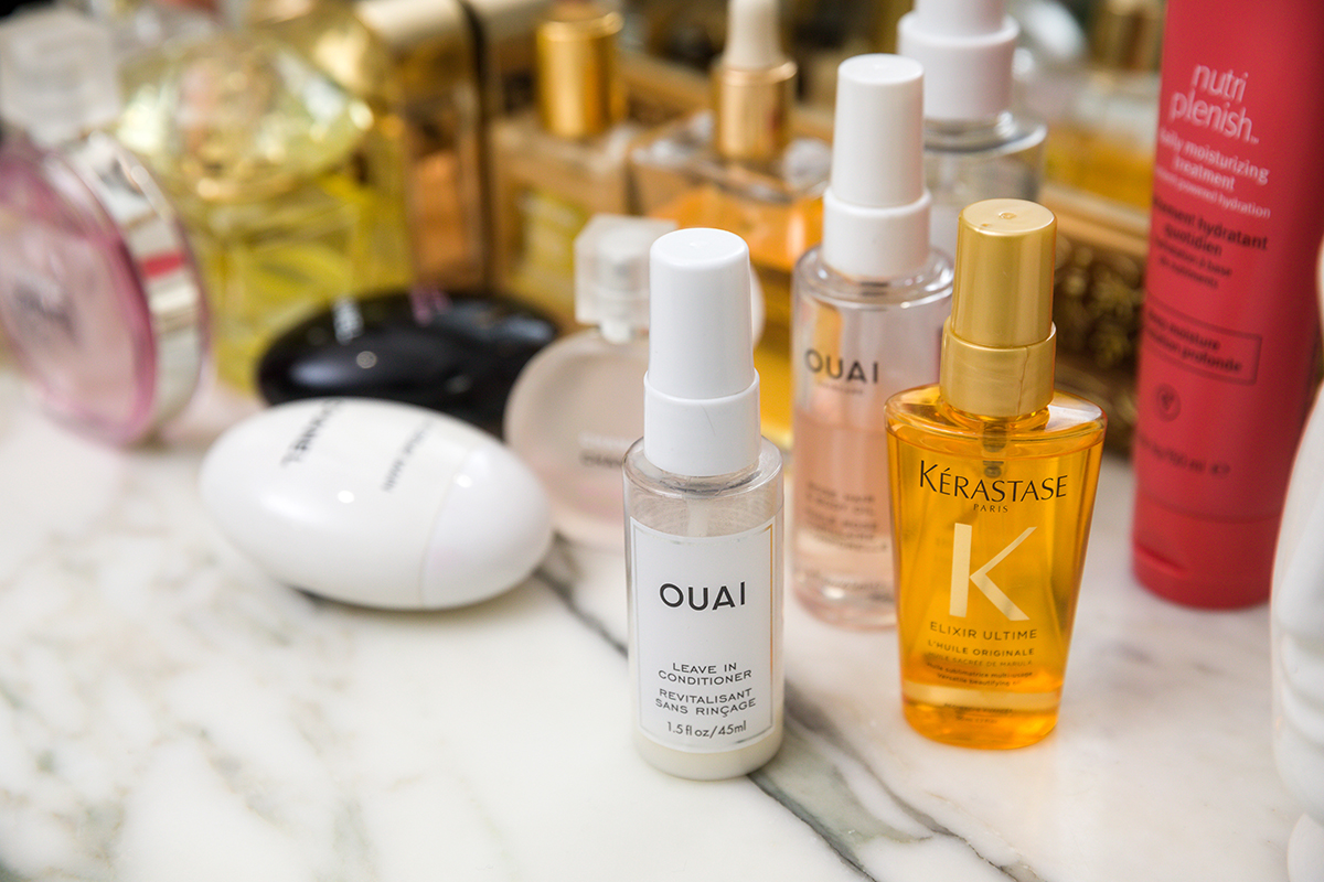 I always air dry my hair. I don’t often use blow dryers and try to treat my hair minimally. Brands I like to use include Gisou and Ouai.