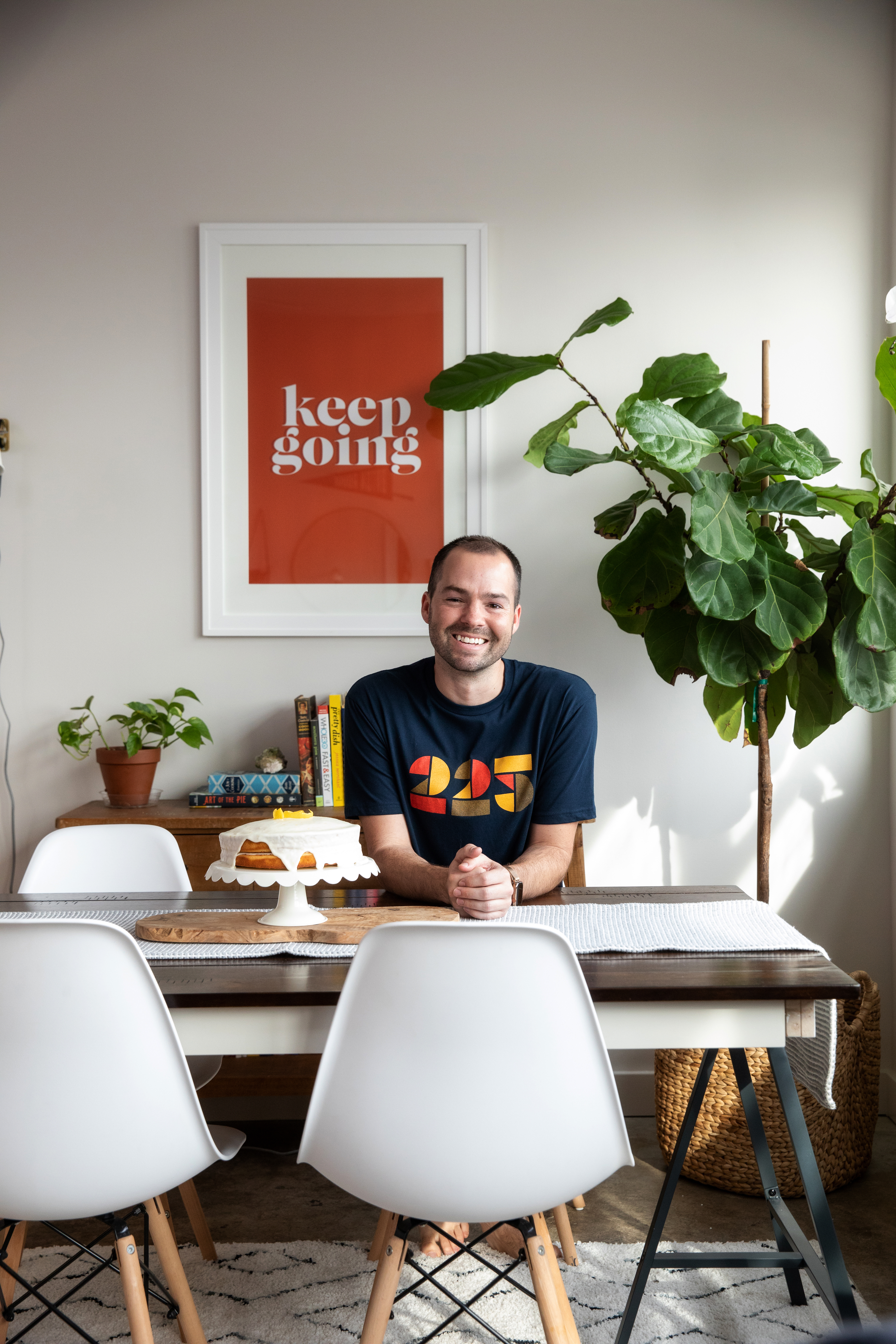 And just as quickly as he’s decorated the space, he’s settled into a routine here. He runs his portrait and wedding photography company from home. He pops open his laptop at his dining table each morning to tackle emails and scheduling. While he types, he sips coffee, always with one scoop of sugar and a splash of 2% milk. Gilmore Girls is his go-to background noise, because he likes listening to Lorelai and Rory banter.