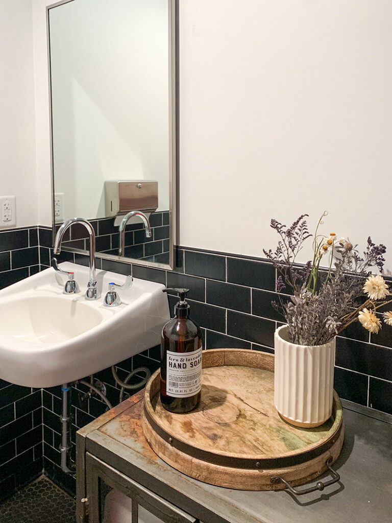 “Restaurants now are looking to create that big moment in multiple spaces in a restaurant. The bathroom is one of those places where we can have fun and introduce some color. You’ll see people taking selfies in there, so why not give a backdrop for that?” says Tiffanie Pitre, art director at Xdesign, Inc.