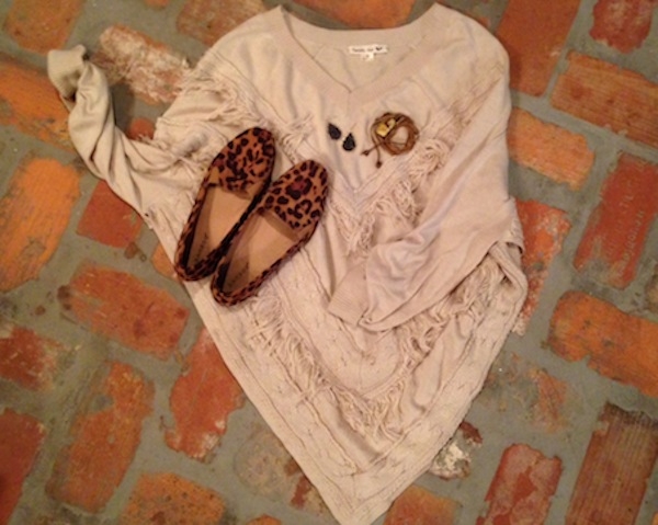 You can couple your poncho with numerous wardrobe pieces: jeans, patterned pants, leggings, and—for my go-getters—try a dress! Pair it with boots or fun loafers. Wear lots of bracelets, or one long necklace. It’s extremely versatile. In Louisiana the weather is anyone’s best guess, so a poncho is the perfect answer: It keeps you warm in the cool morning, yet it still lightweight enough to handle the hotter afternoon.