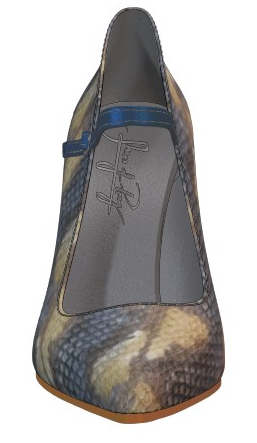 I wanted to stick with a fall color palette myself, so I opted for this great blue and grey snakeskin material with navy accents. According to InStyle magazine, snakeskin shoes are what you need to complete your fall wardrobe. I couldn’t agree more. I chose a classic pump to tone down the snakeskin, and I just couldn’t resist the Mary Jane strap.