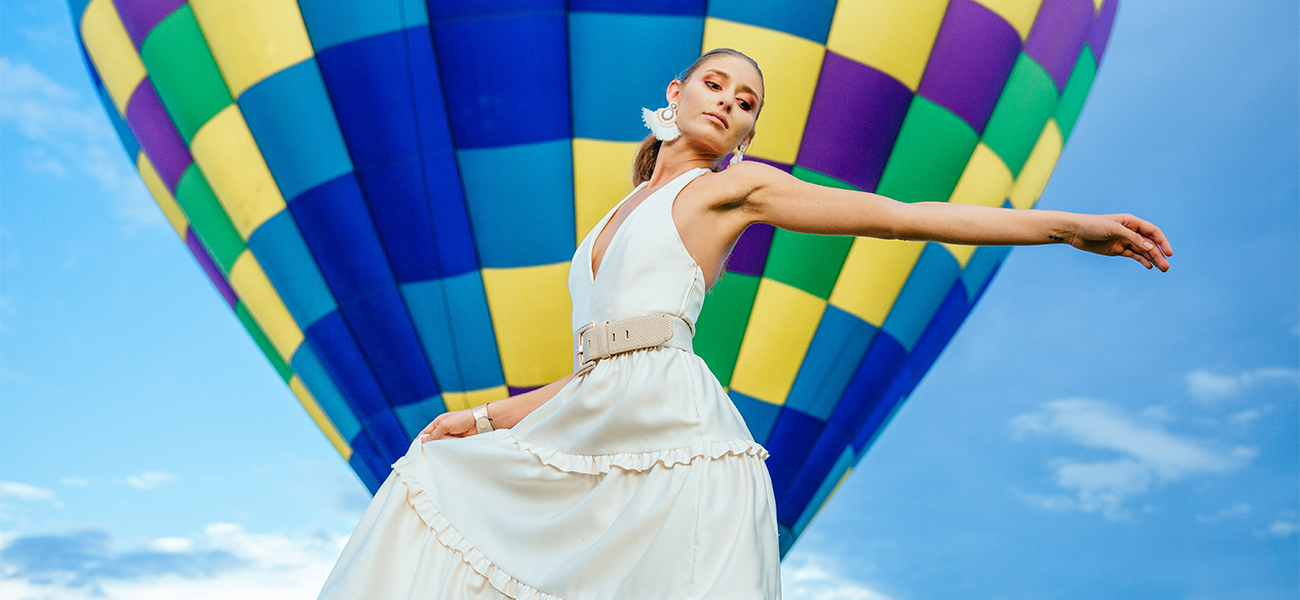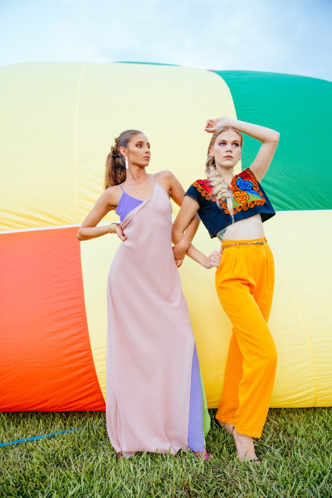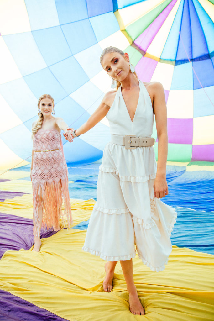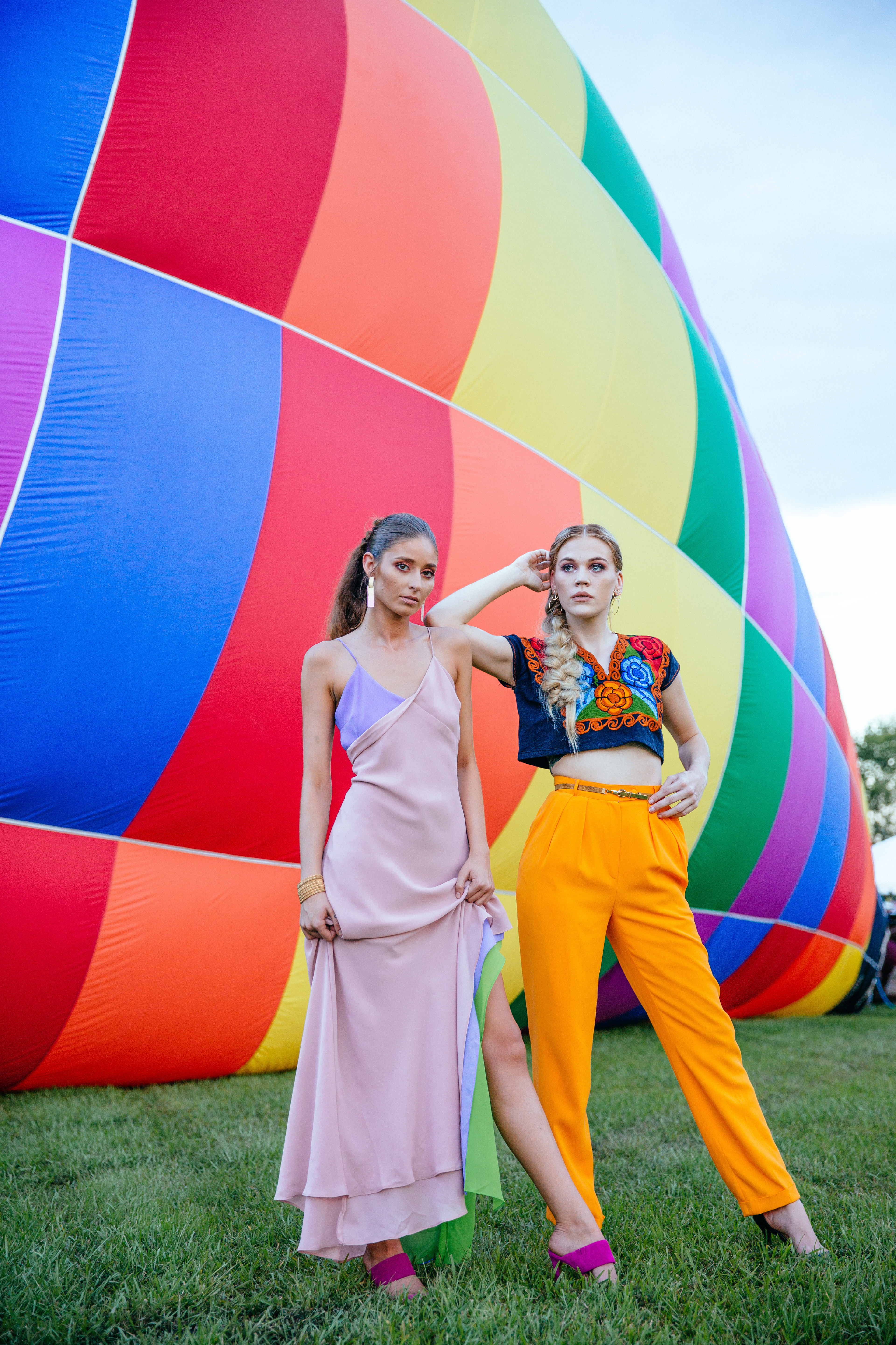 At this year’s balloon festival, 225 brought models along for the fun. We dressed them in whimsical fabrics and colors to mirror the playful patterns of the balloons.