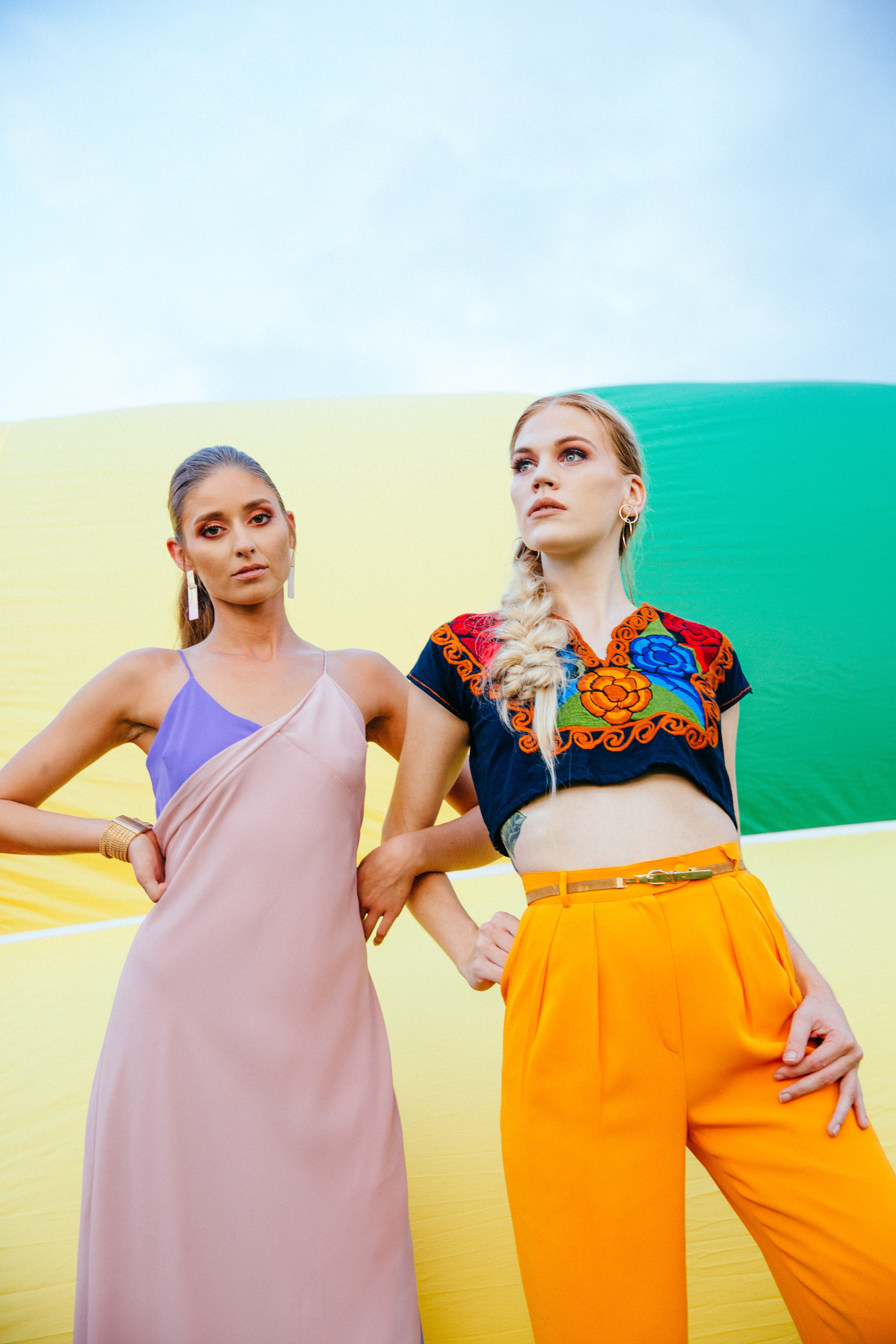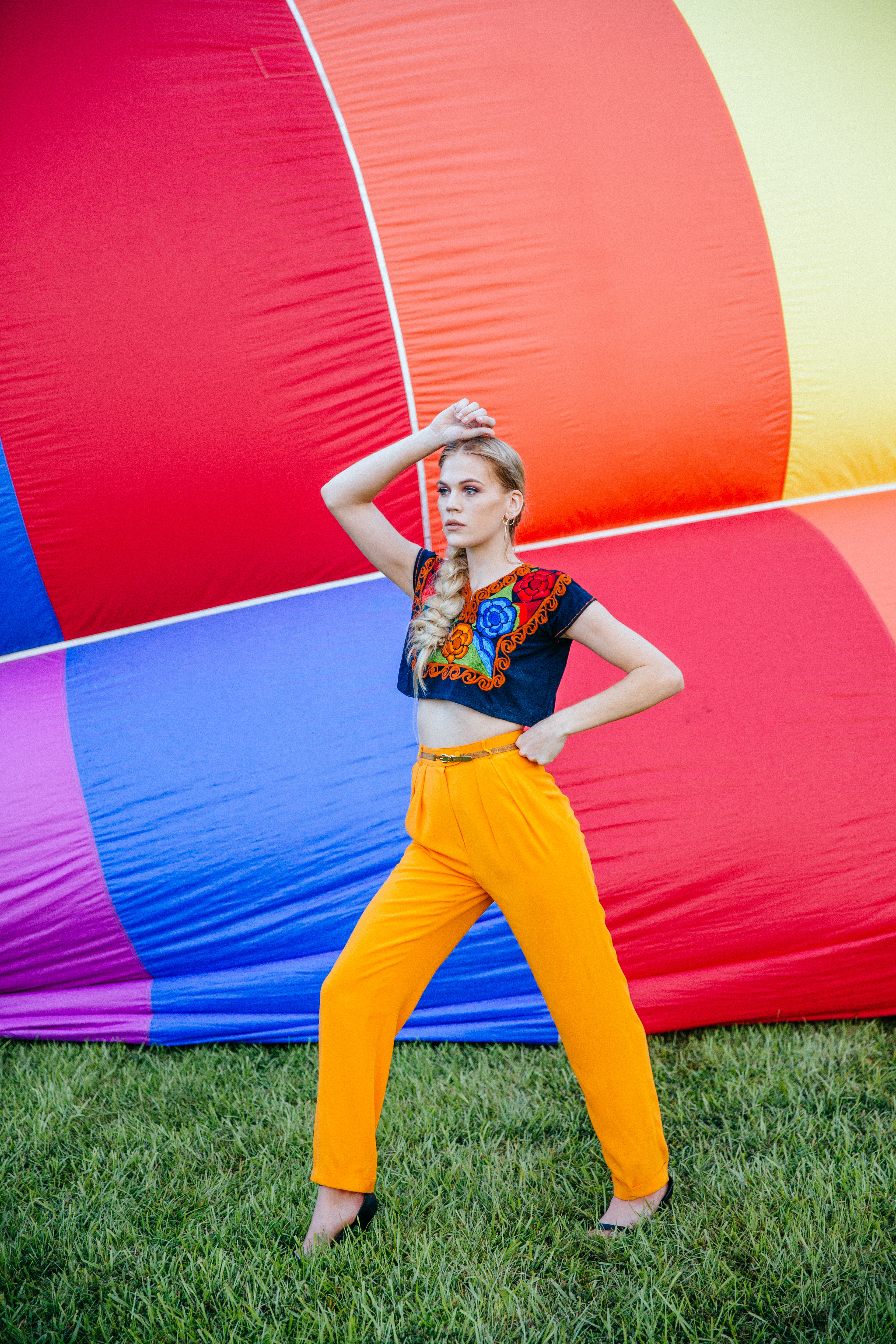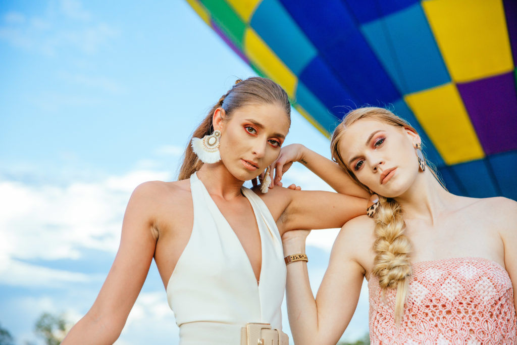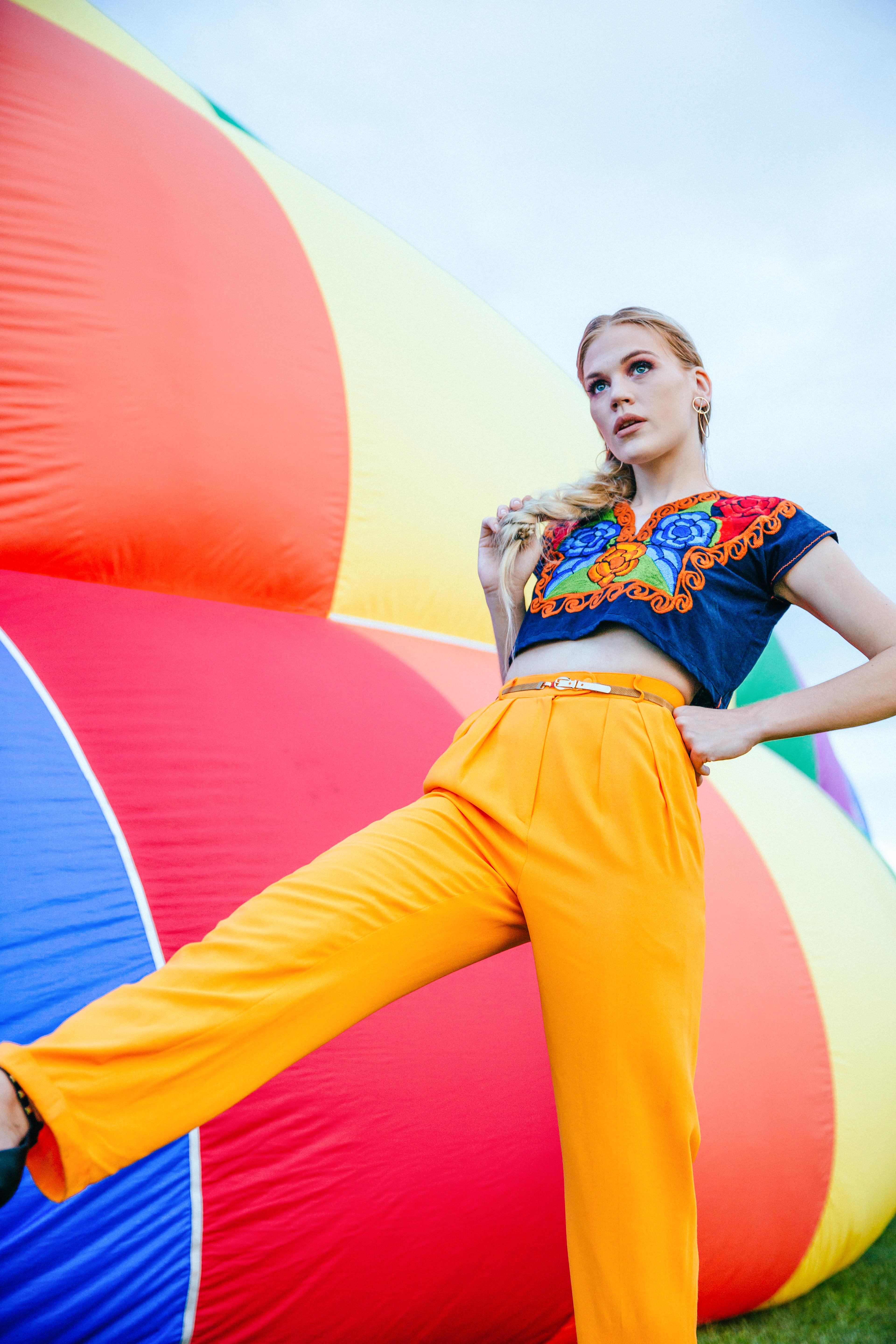 At this year’s balloon festival, 225 brought models along for the fun. We dressed them in whimsical fabrics and colors to mirror the playful patterns of the balloons.