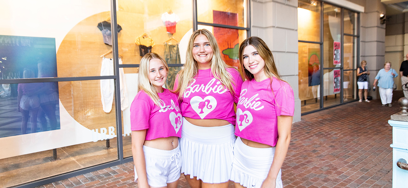 On Barbie premiere days, we wear pink. The opening weekend of Barbie was the time to get all glammed up. We camped out in front of Cinemark Perkins Rowe XD to see what moviegoers were wearing during the first Saturday screenings of the film. With shows running every hour, we watched as friends dolled up in Barbie tops and a stylishly dressed mommy-and-me duo filtered through. There was surely a sea of pink ensembles not just at the Rowe but around Baton Rouge that day—and all over the country.