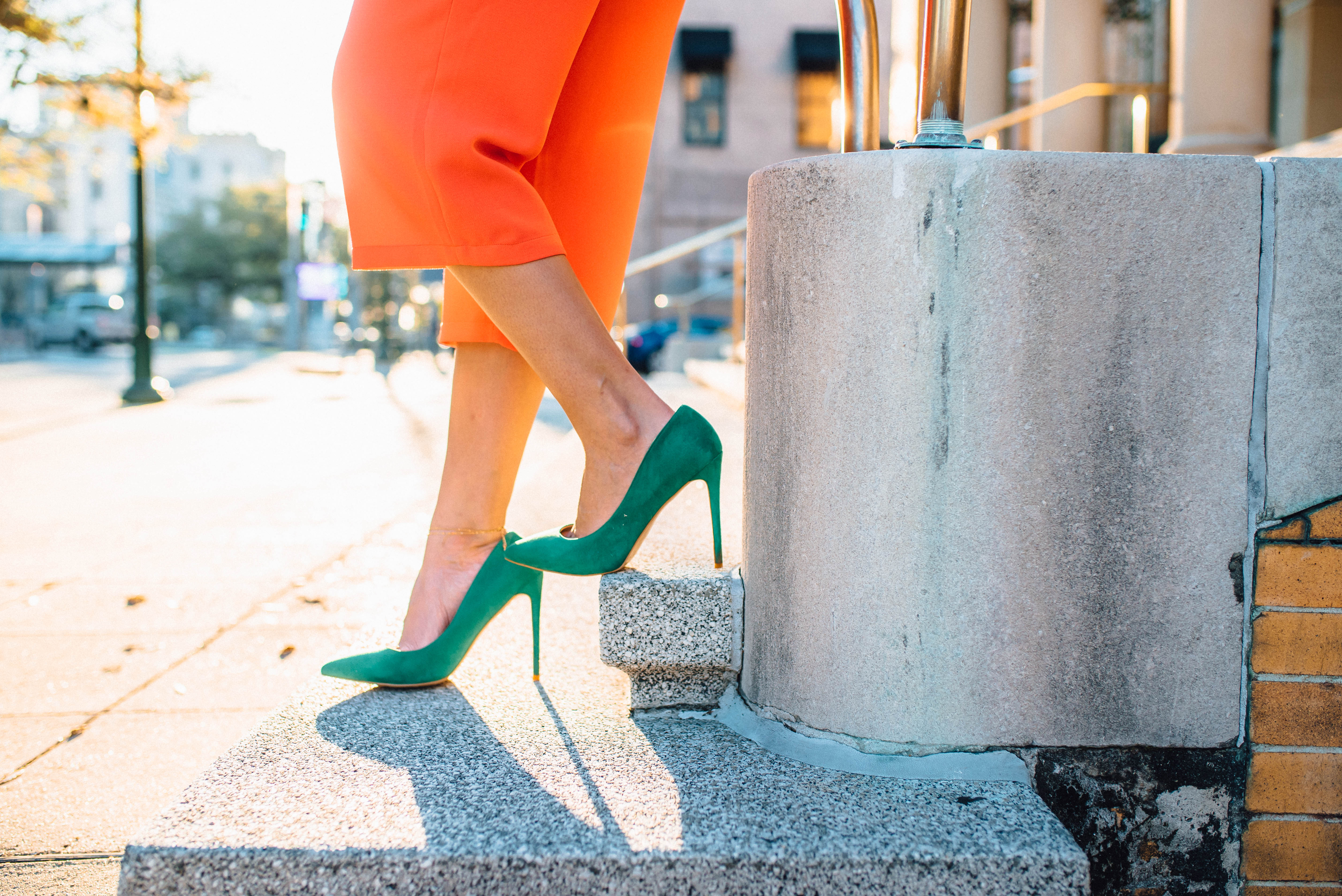 These green suede pumps are special because they are my absolute favorite color. Which is a bit ironic, because they’re very bold, and most days I prefer to blend in or stay in the background. They definitely take me out of my comfort zone. I appreciate that they force me to embrace what I love unapologetically.”
