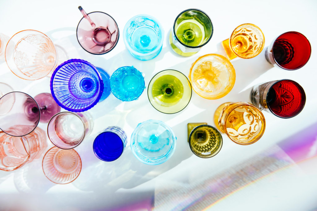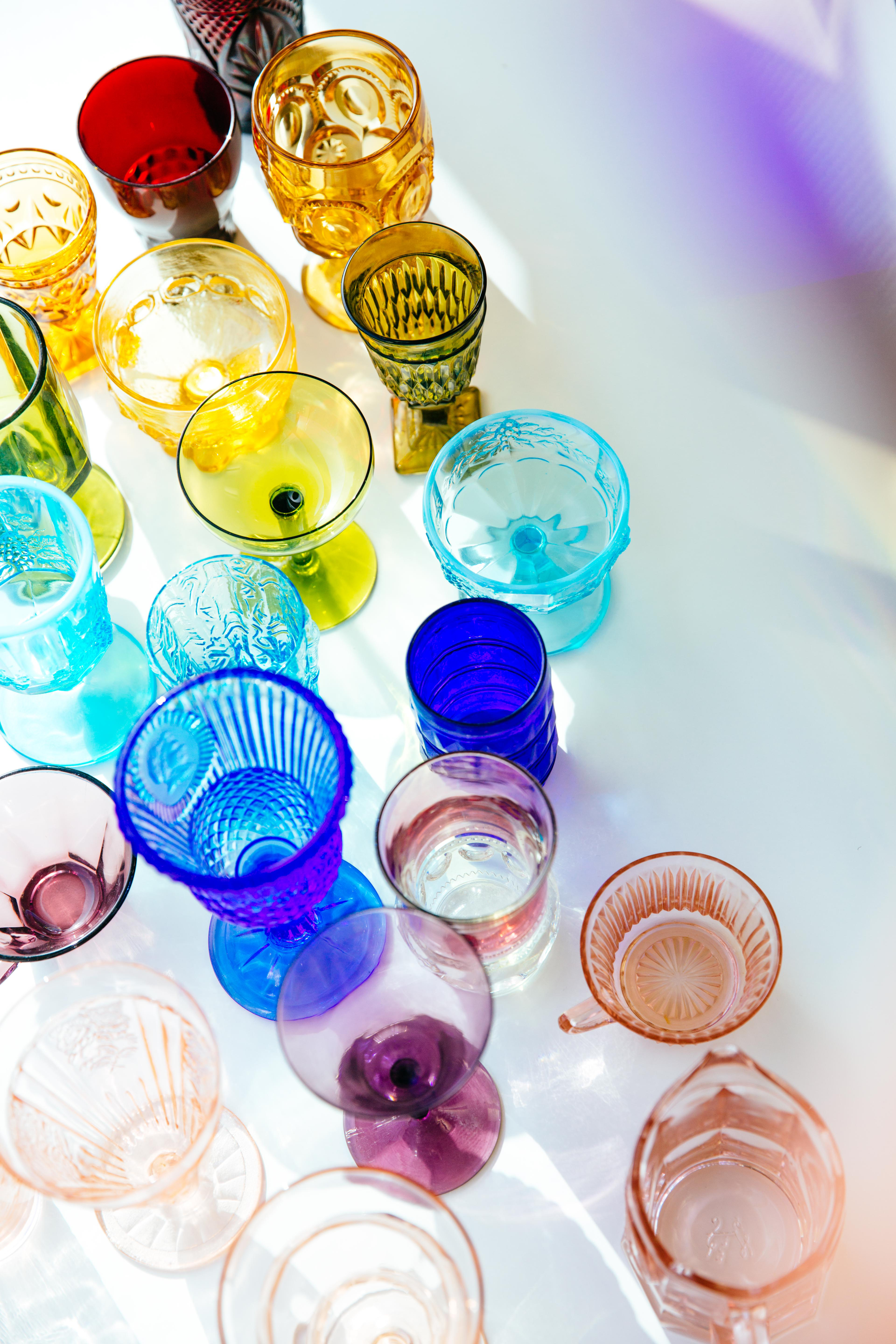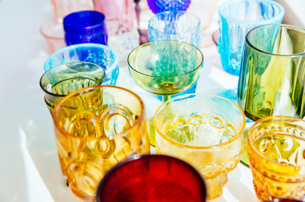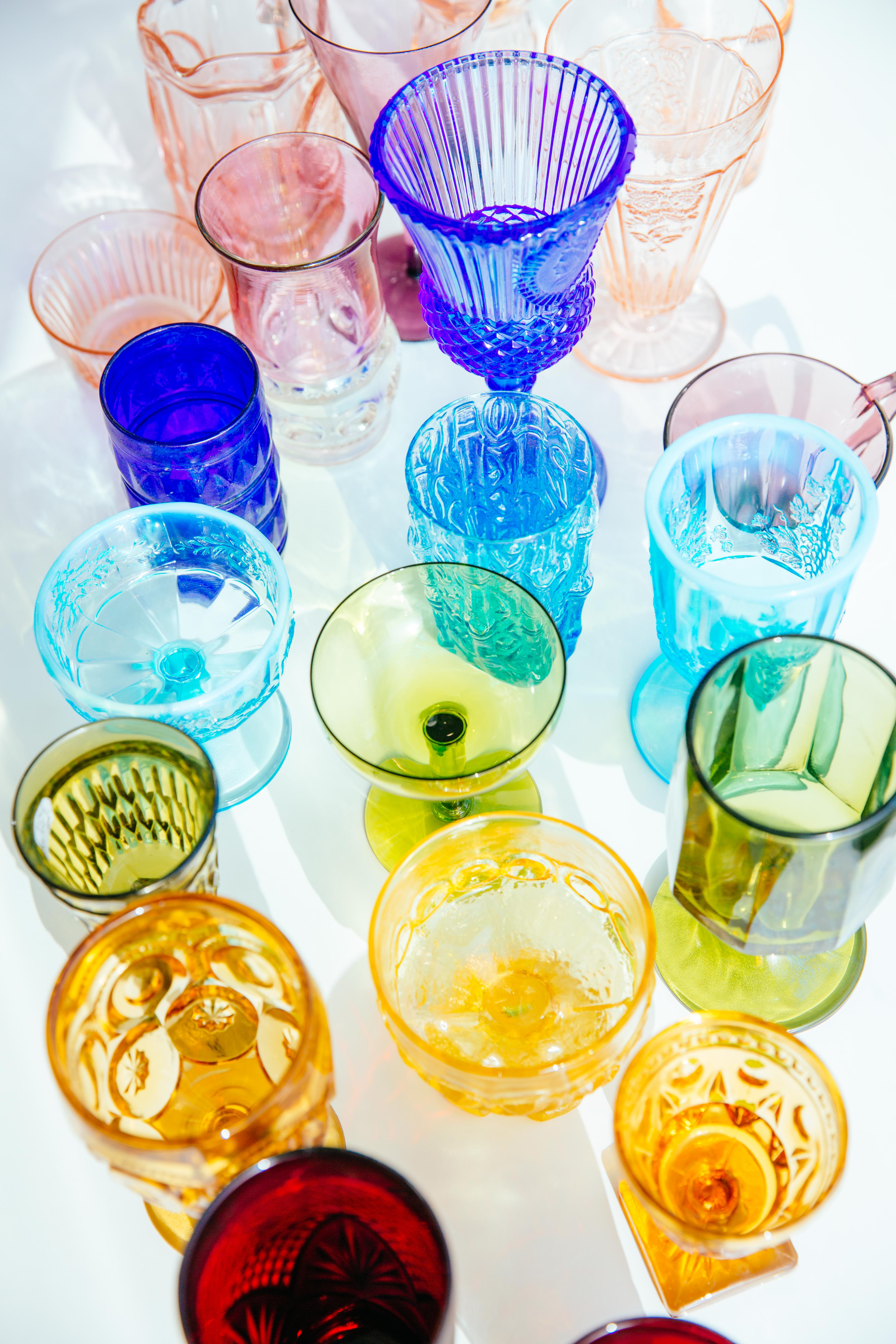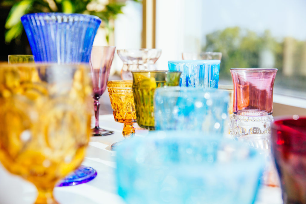 Today, you can find vintage glassware in most local antique shops. Like a scene from your grandmother’s china cabinet, they’re sorted by color, shape and style.