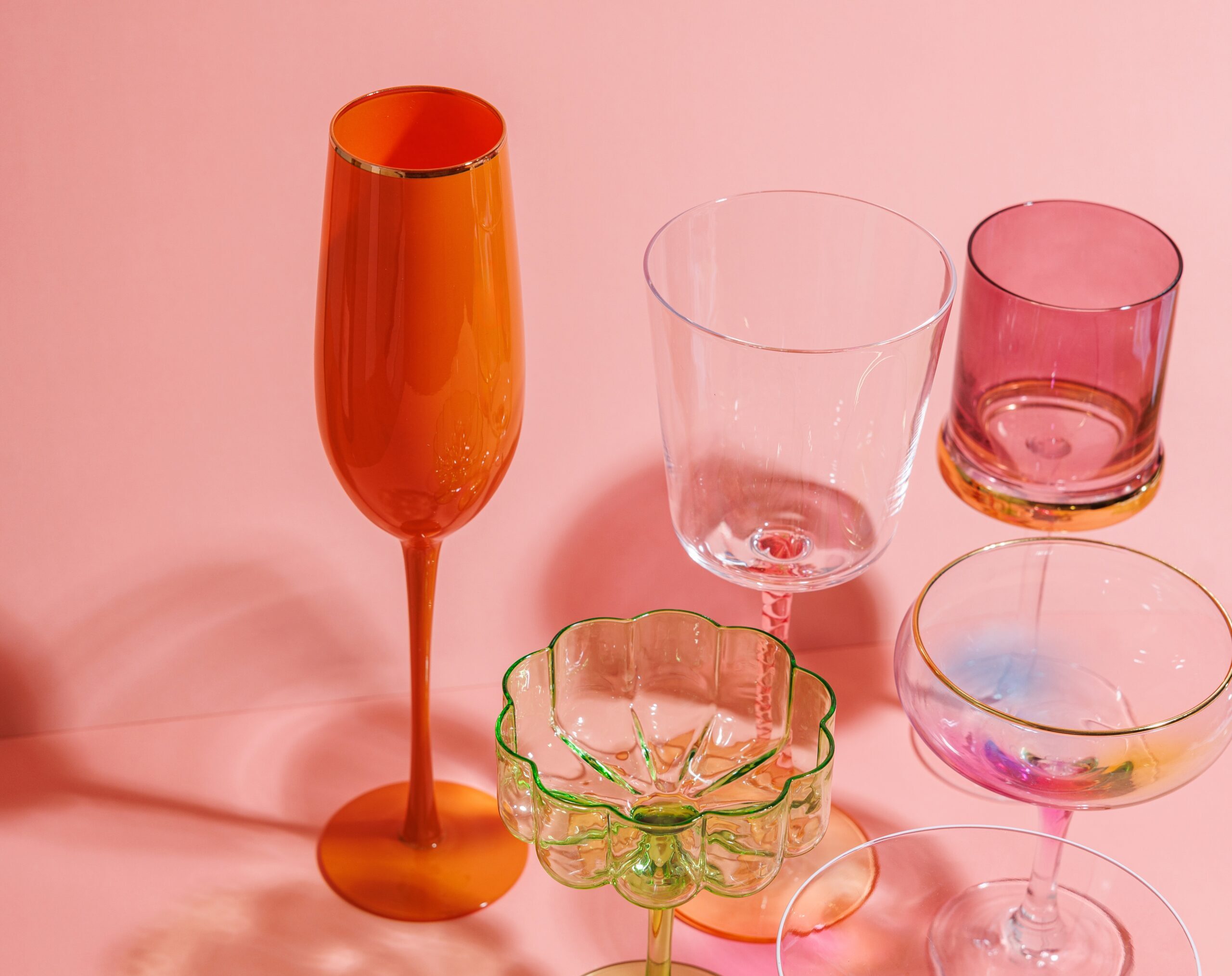 Candy-colored flutes, chunky art-deco stemware, iridescent coupes and stemless, playfully inscribed cups are reminders of what drinking wine is really all about: having fun.