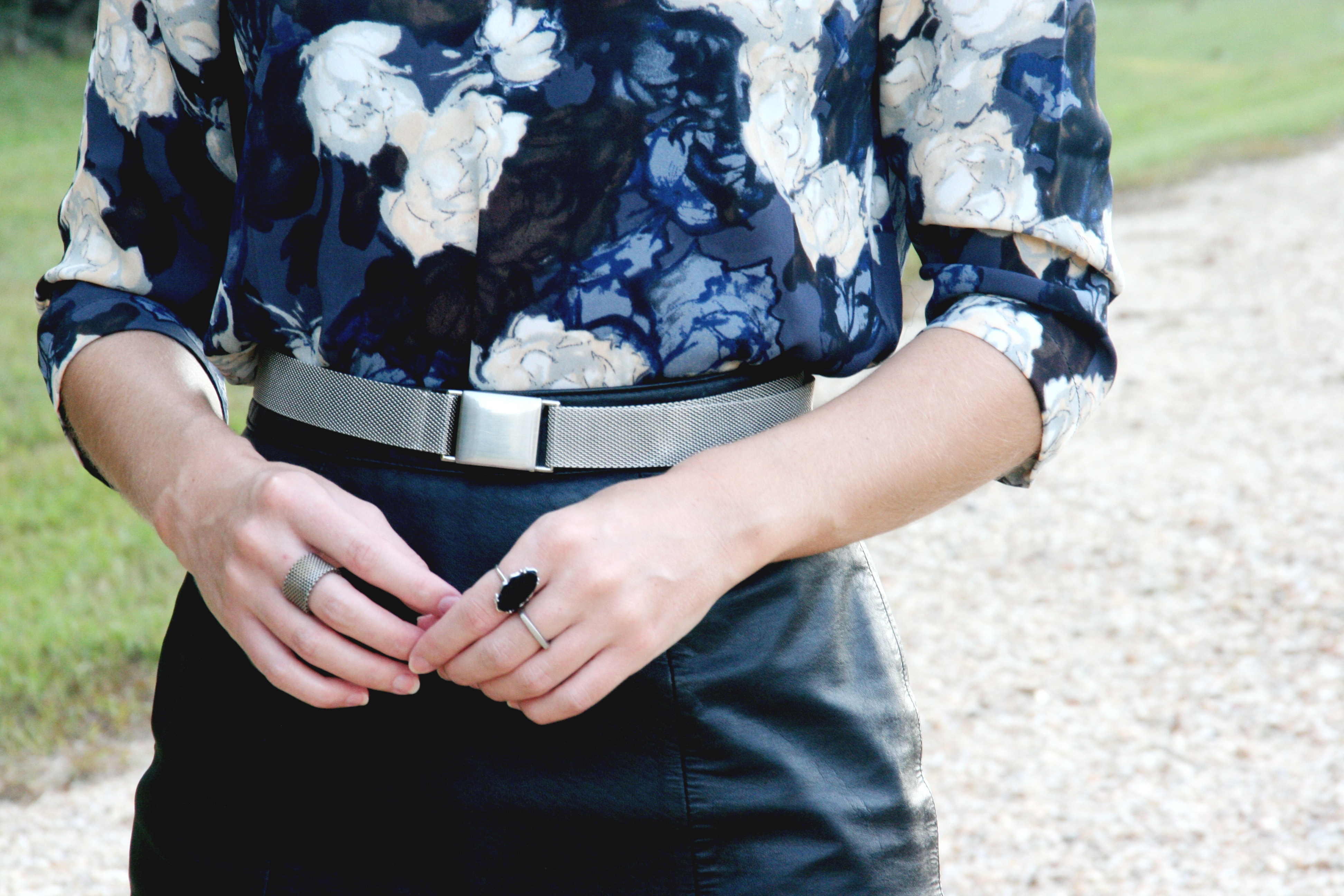 I love the juxtaposition of leather and delicate florals. The combo will never get old. I found this blouse on a TJ Maxx run—it’s actually a crop top! It is long enough on me to be tucked into high waisted bottoms and boxy enough to look very early 1960s with skinny pants. Crop tops are a big trend right now, but wearing them to work or even on most non-work days is not exactly an option. Sometimes being petite has its perks! The zipper in the back gives it a little oomph and toughens it up a hair. If I paired this blouse with refined bottoms, the look would appear too sweet for my taste. The small detail of a zipper can make a big difference in deciding whether or not to purchase a piece of clothing.