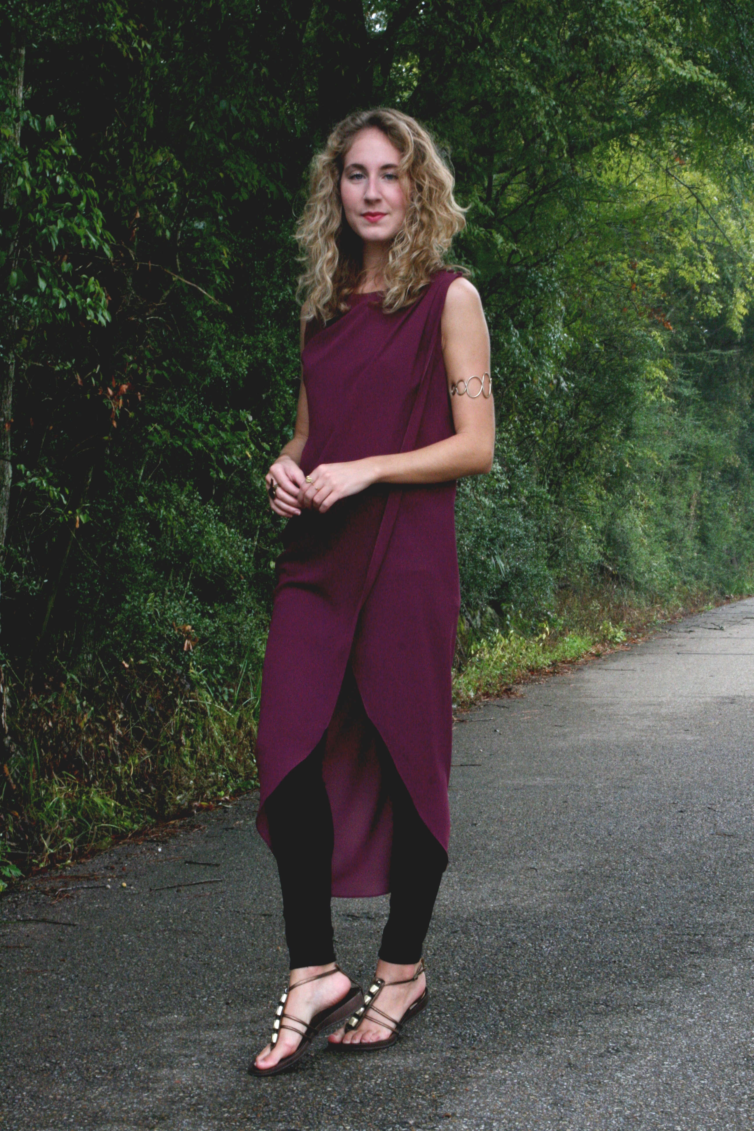 One of the ’90s trends coming back around is wearing a button-up dress over denim. Personally, I look like a child when I tried it out on my adult body, so it is not for everyone! However, I still wanted to figure out a way to pull off the look 1) with things I already own and 2) with my own flair. Enter this toga blouse!