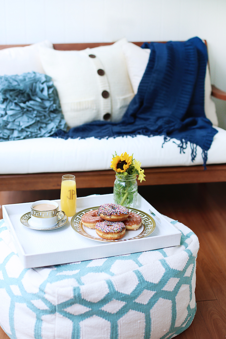“I love incorporating all of the colors I keep in my wardrobe into my home because I like to surround myself with lots of organized prints and color,” she says.