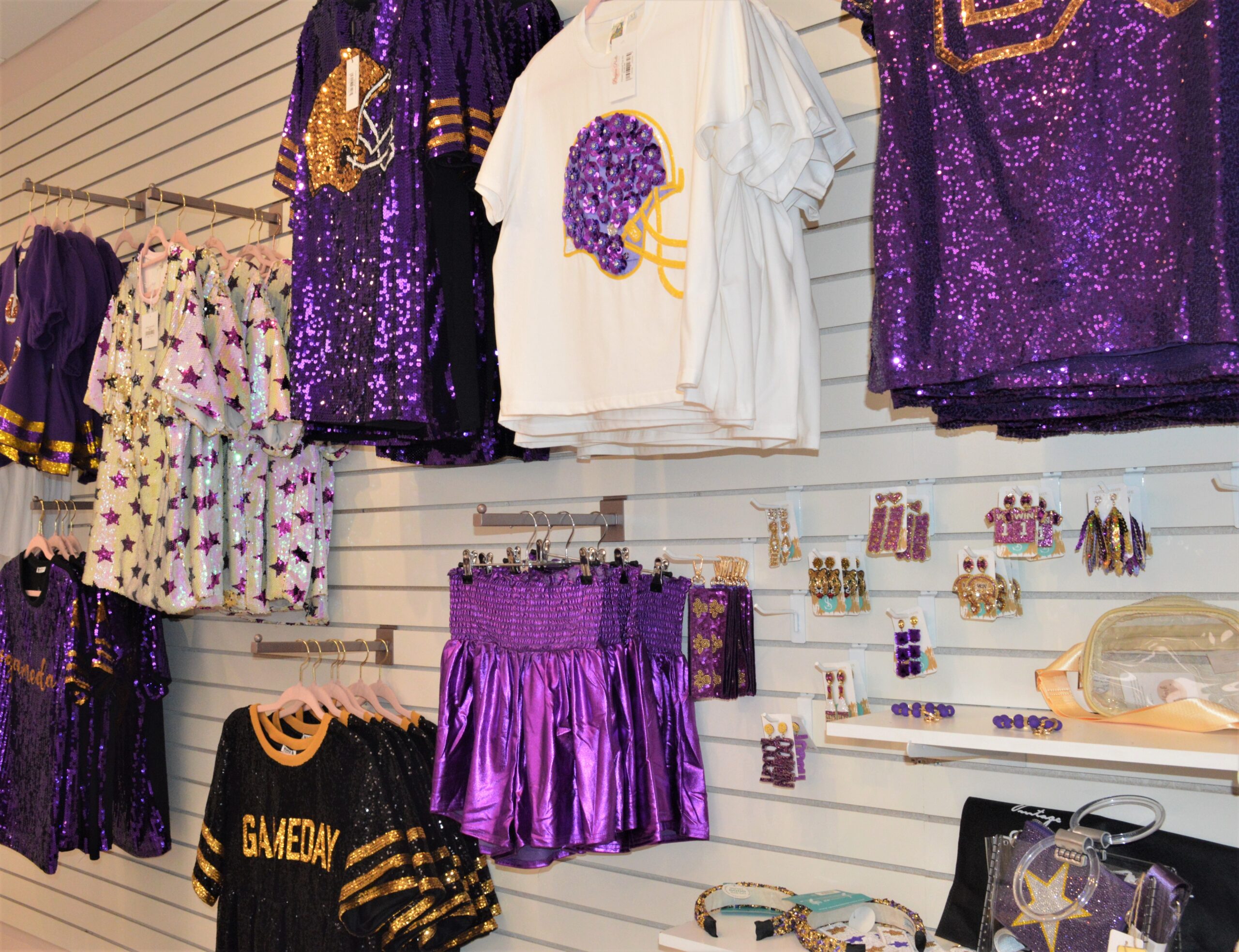 Looking for a new fall wardrobe or game-day outfit? Bayou Belle Boutique has got you covered. Shop fashion trends, accessories, and now Queen of Sparkles at all 3 locations. The LSU collection is just what you need for a Saturday in Death Valley. The newest location just opened right in the heart of Baton Rouge off of Jones Creek. Shop in-store today and dress how you want to be addressed.