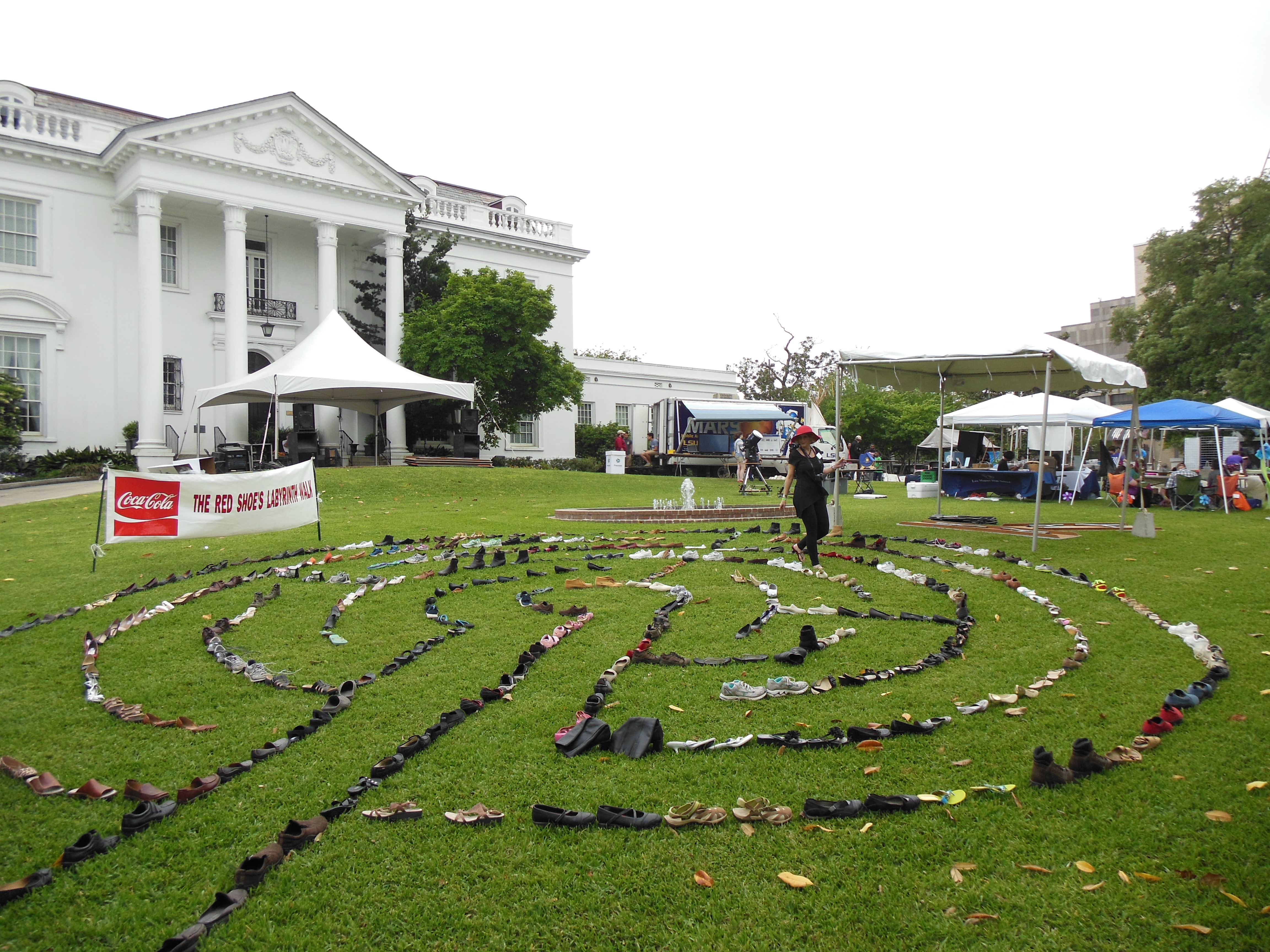 For the past few weeks, The Red Shoes has been collecting gently used shoes. Come Sunday’s event, they will be creating a labyrinth out of the donated shoes.