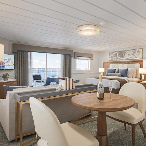 - The suites of American Cruise Line’s American Heritage, lend a contemporary vibe to an otherwise old-school steamboat design.