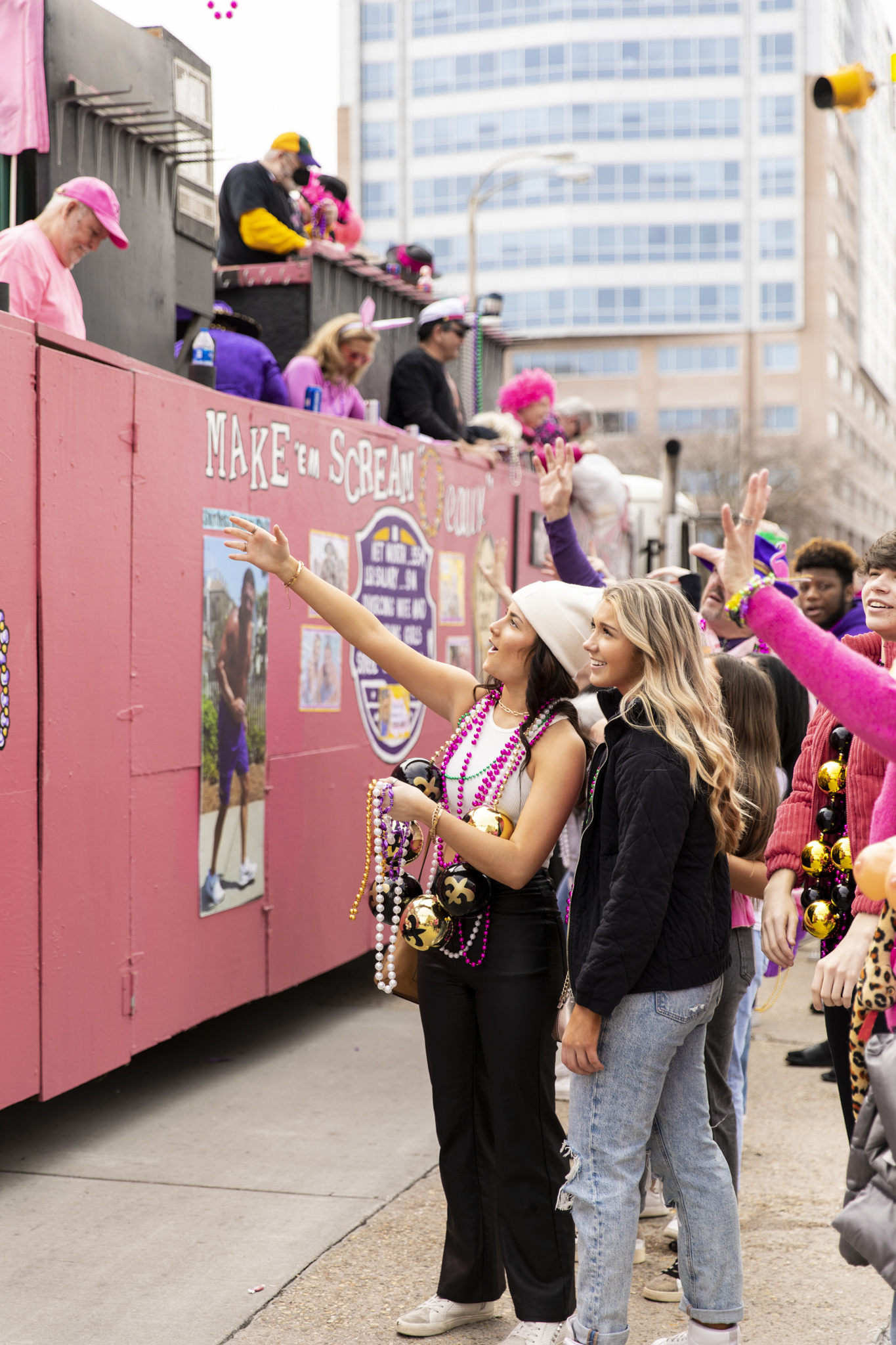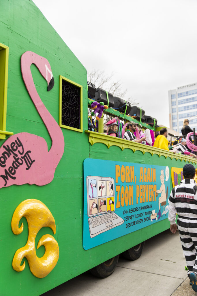 Between the award-worthy, packed vehicles, there will be bands and dancing troupes, too, like the Baton Rouge BeignYays, The Golden Guys and, of course, The Flamingeauxs. The parade will be led by the U.S. Army Marching Band from Shreveport. And though it won’t happen this year, King says the SPLL is working on securing a flyover for a future parade.