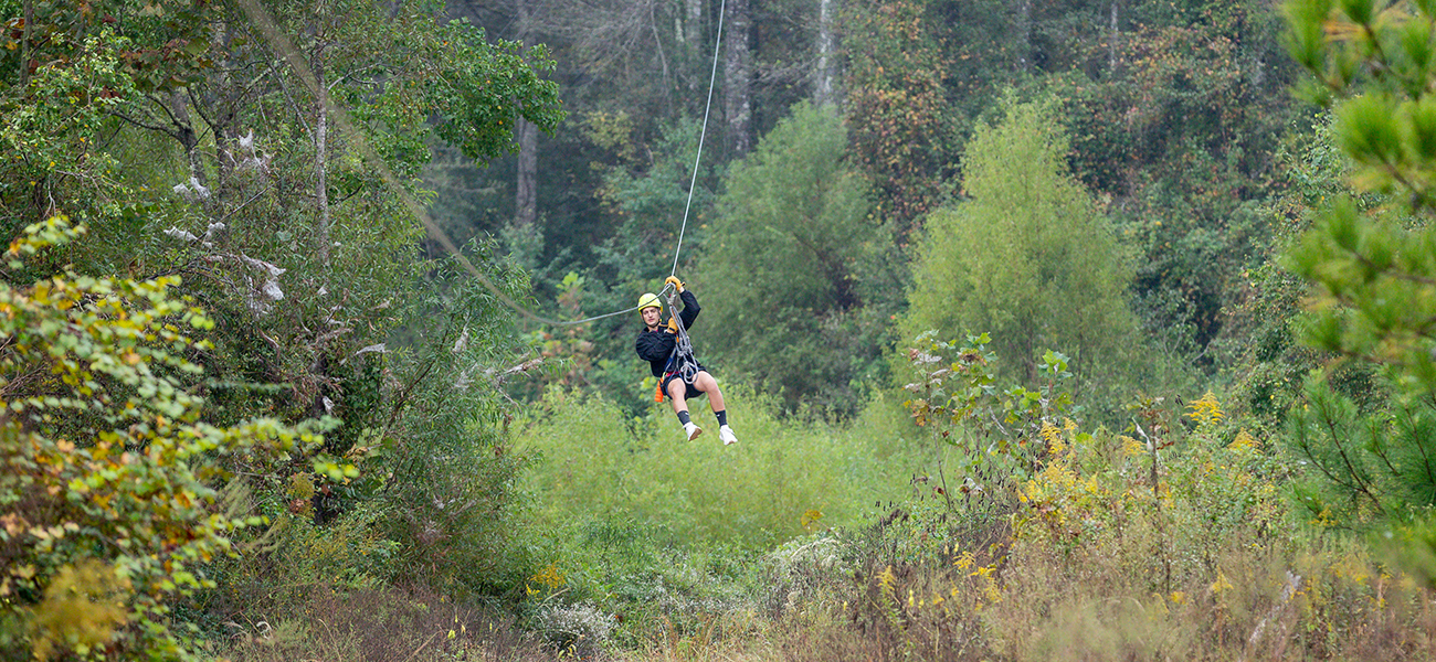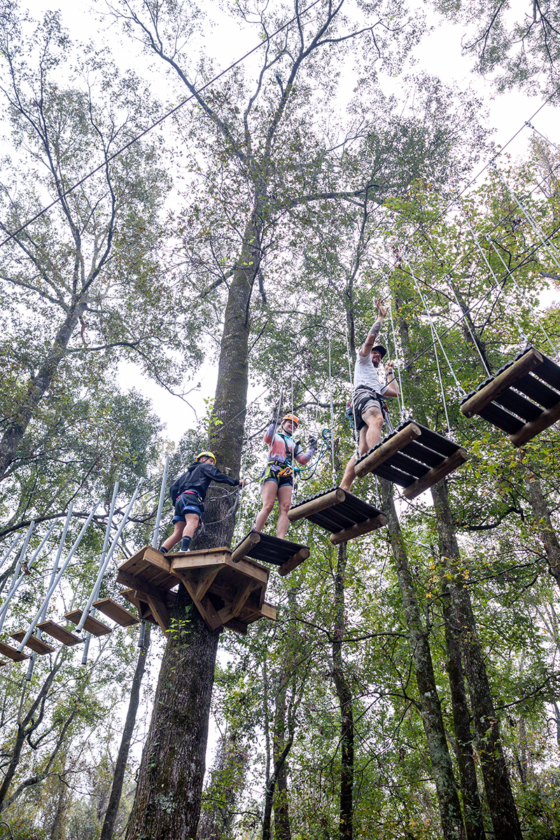 Inside Magnolia Ridge, a zip line carries riders 70 feet over the Comite River