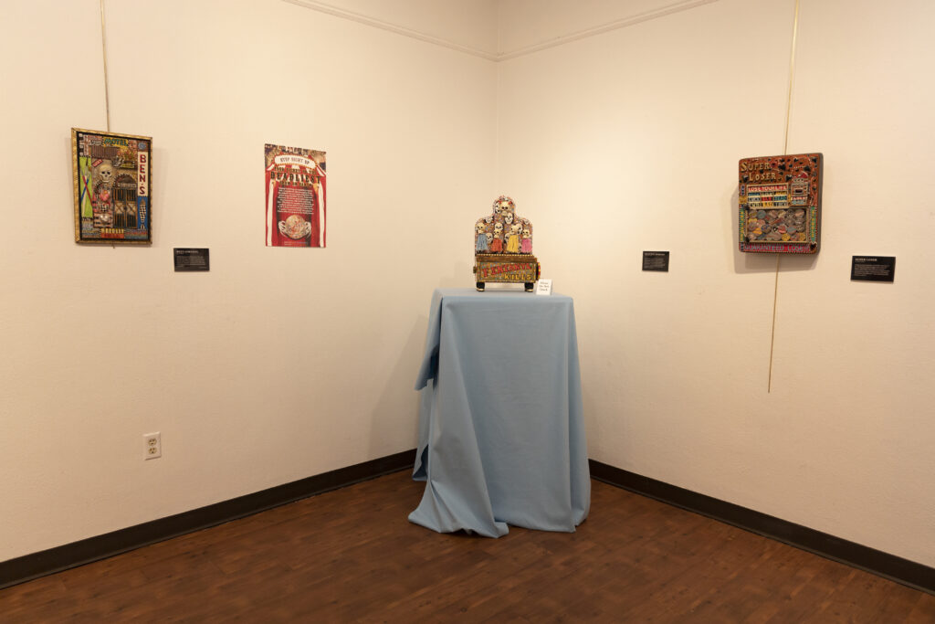 In the exhibit titled “Art and Addiction”, running now til June 4 under the same name as the artist’s 2018 book, Peabody addresses the region’s drug issues through multimedia artwork that tells his and others’ stories of addiction that took place over the course of more than 20 years. The idea for the exhibit all started in a Baton Rouge Community College classroom. Peabody was an administrator and art instructor at the time, and was vocal about his recovery in Alcoholics Anonymous. His students encouraged him to use art to spread his message and raise awareness.