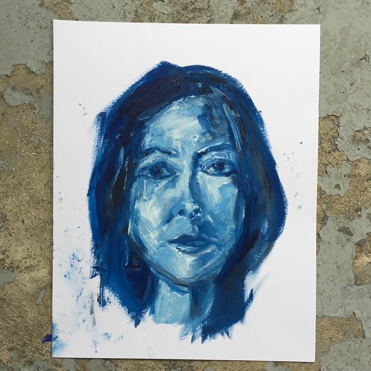 We first spotted this photo on Instagram and were drawn to the tones and texture of the artwork pictured. The painting is a study of a woman’s face on paper using three tones of oil paint, by Alexis Moon, local artist and musician.