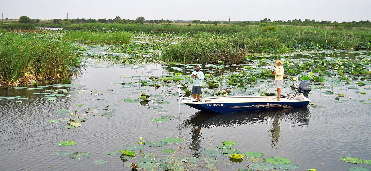 The Atchafalaya Basin is ripe with all types of wildlife, and it is especially promising for anglers of any skillset. “What’s interesting about the Atchafalaya is it’s a flood basin,” Greene explains. “Whenever they open the Morganza Locks, they flood the basin to drain the river, and the amount and the type (of animals) … it looks like Noah’s Ark, what’s coming up on the levees.” Other popular locations include Port Fourchon, Venice and Cocodrie.