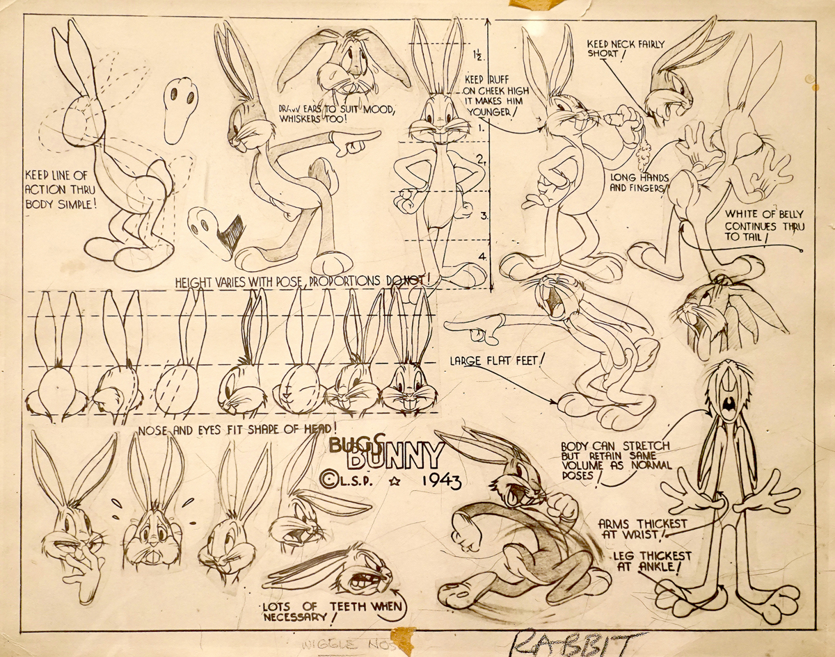 You can see, for example, the illustrated rules Warner Bros. artists developed for certain characters, such as how to droop Bugs Bunny’s ears when he was sad or how far to stretch his arms and legs when he was surprised. The lengthy amount of time and skill it took to illustrate each scene and each character movement for just a few seconds of clever animation is mind-boggling to us today.