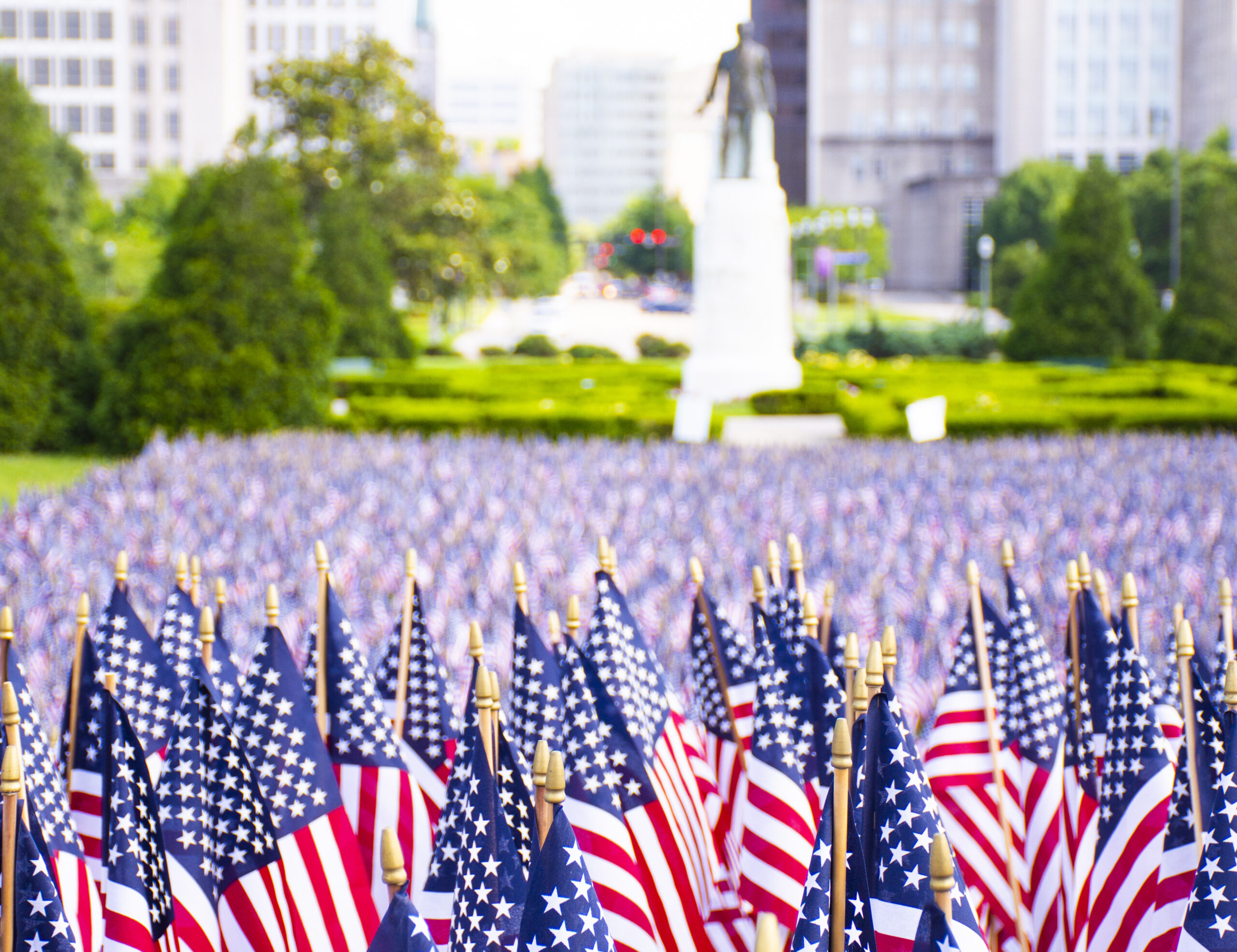 The public is invited to view or help plant the 11,000 flags for the local chapter of Blue Star Mothers of Louisiana‘s annual Garden of the Flags display.