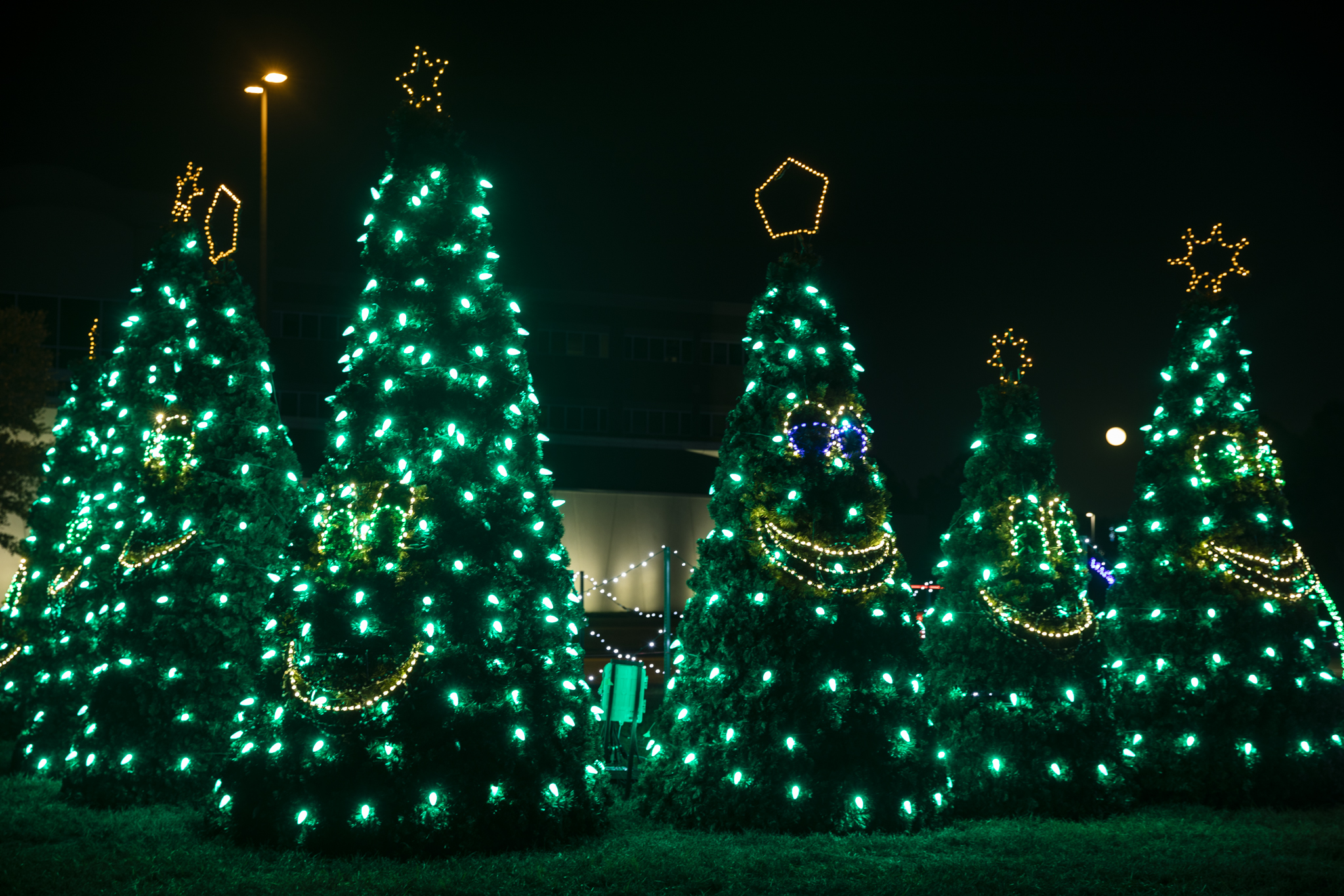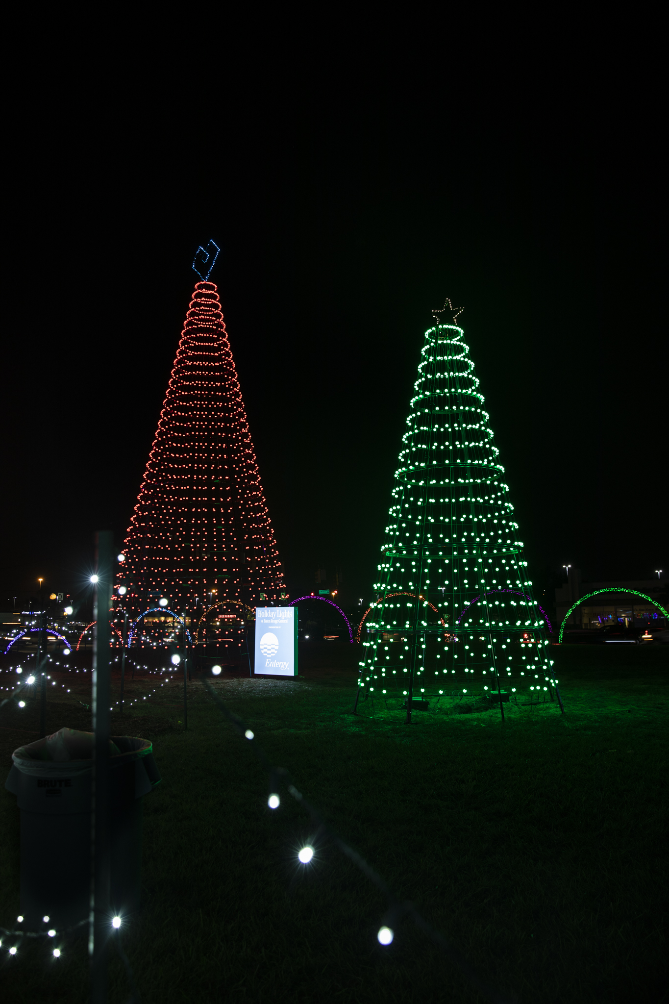 Among the more than 400,000 lights, this year’s display includes a brand-new 24-foot walk-through holiday lights tunnel, as well as a large walk-through ornament and holiday present; a 40-foot tree and two 25-foot trees synchronized to music; eight singing trees; and a 9-foot Cajun alligator light display.
